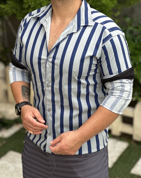 نام محصول : پیراهن آستین بلند راه راه NEW TP طوسی سرمه ای