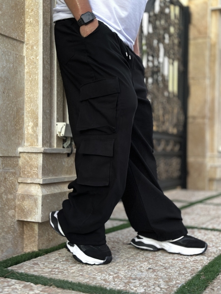 شلوار اسلش کارگو سایز بزرگ مشکی